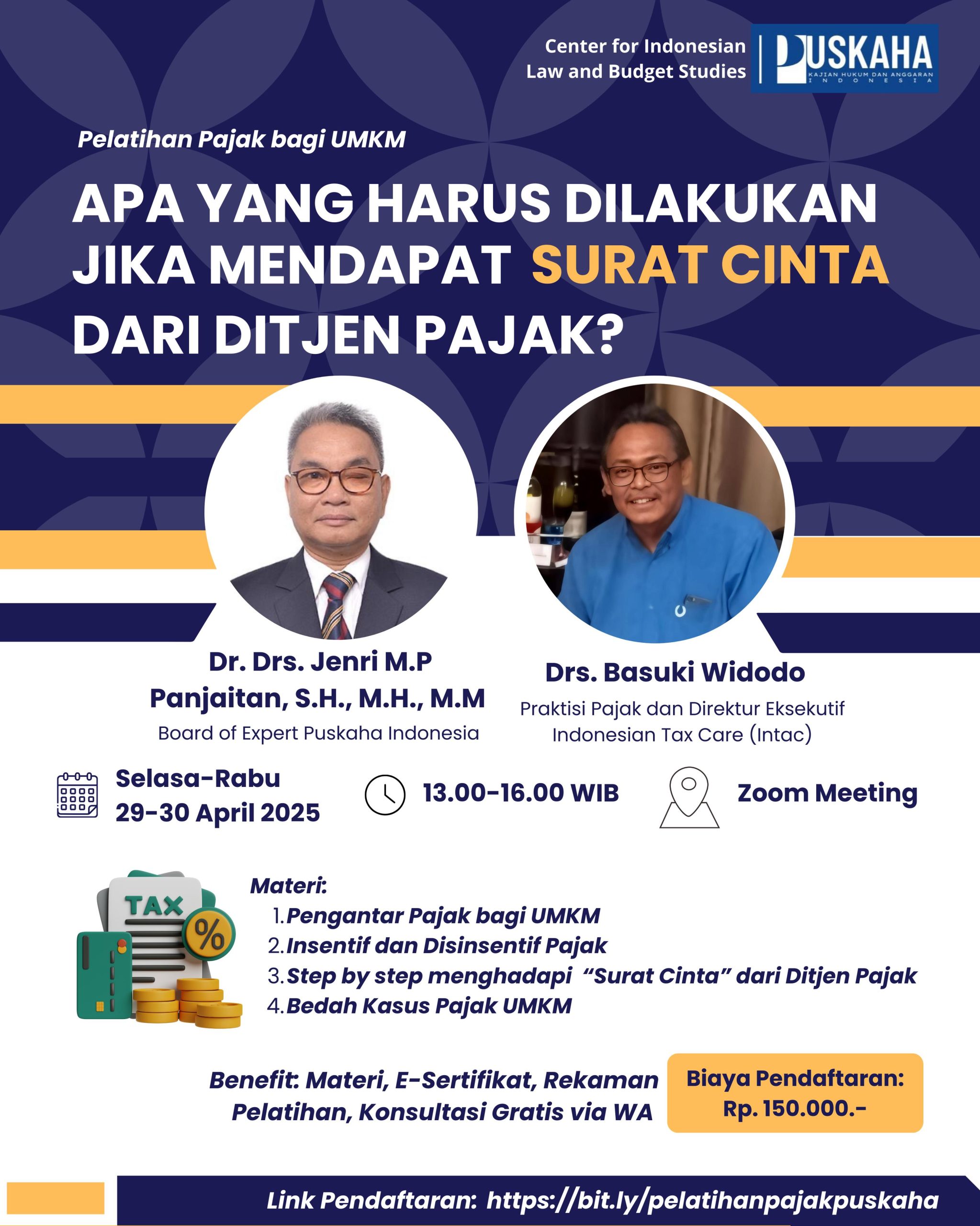 π₯Daftar sekarang melalui link berikut: https://bit.ly/pelatihanpajakpuskaha