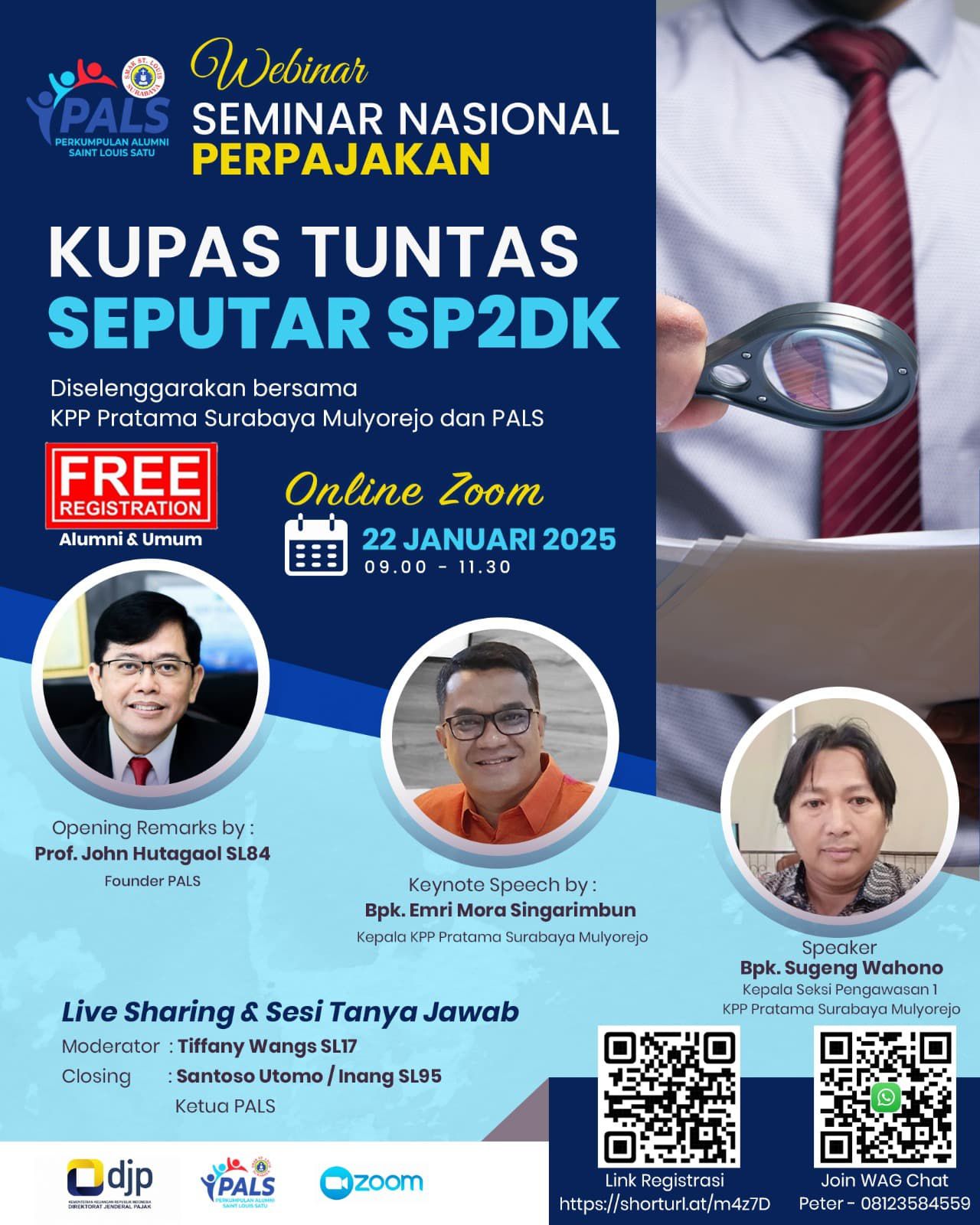 PALS Surabaya bersama dengan KPP Pratama Surabaya Mulyorejo, selenggarakan Webinar Nasional Perpajakan yang bertajuk “Kupas Tuntas Seputar SP2DK” yang akan diselenggarakan pada: