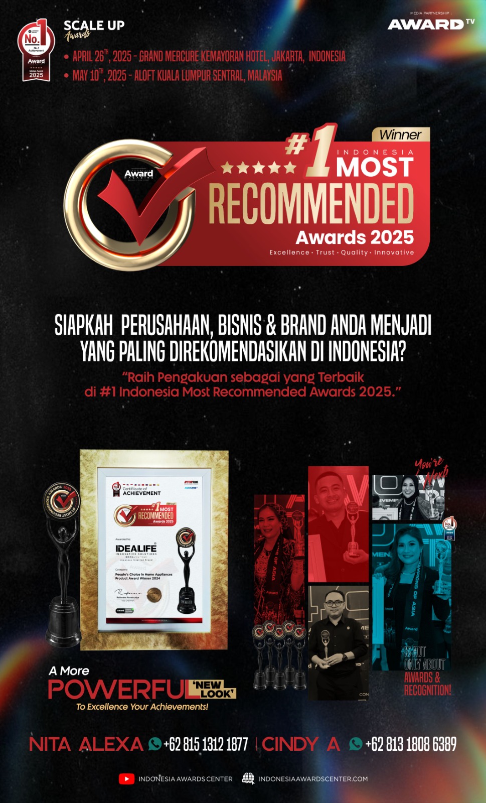 Menerima Penghargaan “#1 INDONESIA MOST RECOMMENDED AWARDS 2025” Mohon Kehadiran Untuk Acara Penyerahan Sertifikat Dan Plakat Pada :