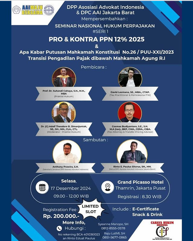 SEMINAR NASIONAL HUKUM PERPAJAKAN Selasa, 17 Desember 2024