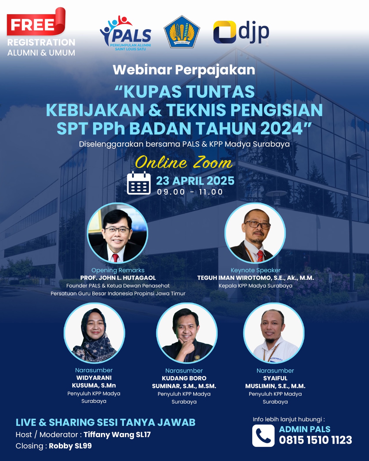 Perkumpulan Alumni Saint Louis Satu (PALS), bekerja sama dengan KPP Madya Surabaya dan Direktorat Jenderal Pajak (DJP), dengan bangga mengundang Bapak/Ibu untuk mengikuti webinar perpajakan bertema:
